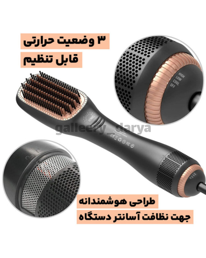 این سشوار به علاوه ایجاد حرارت برس نیز دارد که مو را صاف میکند.