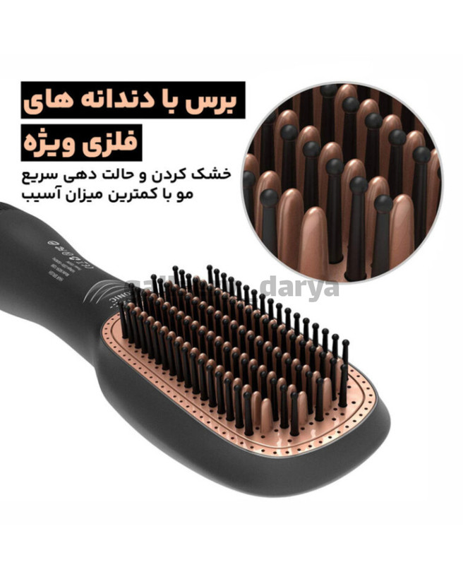 در دندانه های برس فلز آلیاژ وجود دارد که به کنترل دما و آسیب نرسیدن به پوست سر کمک میکند.